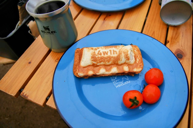コーヒーを淹れ テントとシュラフを広げて乾かす☀