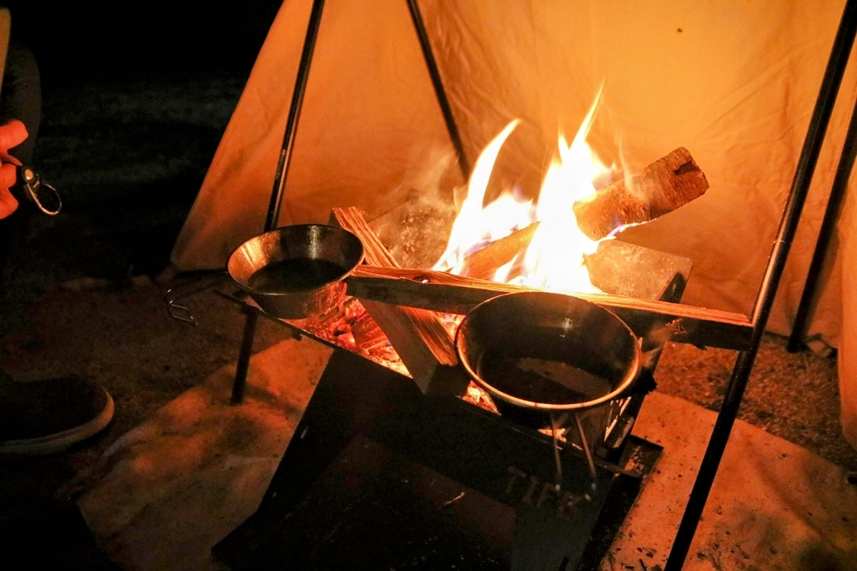 焚火にも、テントにも…